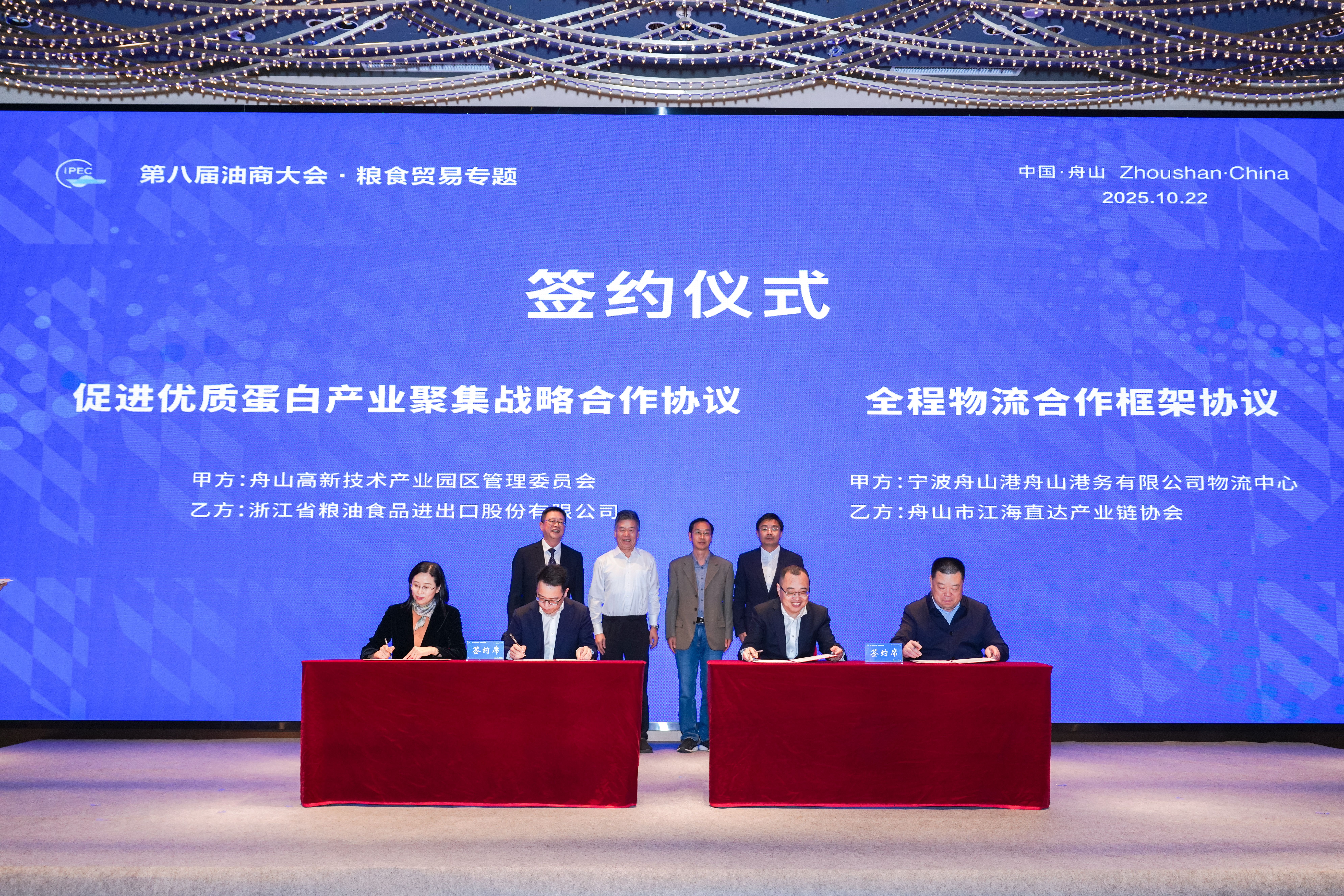 浙江糧油與舟山高新區(qū)簽署《促進優(yōu)質(zhì)蛋白產(chǎn)業(yè)聚集戰(zhàn)略合作協(xié)議》